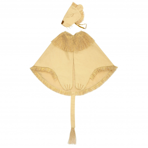 Roar! Dressing up as the king of the jungle will be fantastic fun. Our sensational lion cape and headdress dress up kit is really special! The cape features gold fringing, embroidered paws and a fabulous swishy tail. The headdress features stitched eyes and nose, gold whiskers and gold glitter elastic with a hook and loop fastener.