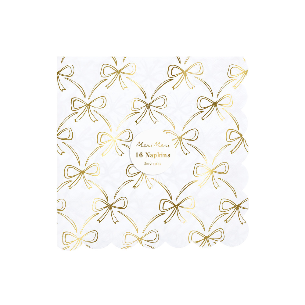 Add flair to your party with these elegant paper napkins. The combination of golden bows and a scalloped border, is guaranteed to bring effortless sophistication to your table, making every setting shine. Disposable napkins have never been this chic, and are perfect for the whole family to use. Ideal for Christmas, New Year, golden wedding anniversaries, bridal showers and special birthdays.