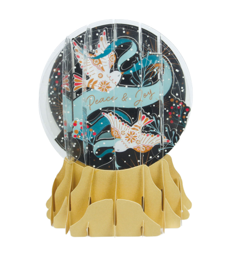 Pop-Up Snow Globe Greetings collapse flat, can be mailed using a regular first-class stamp, and include a coordinating notesheet.