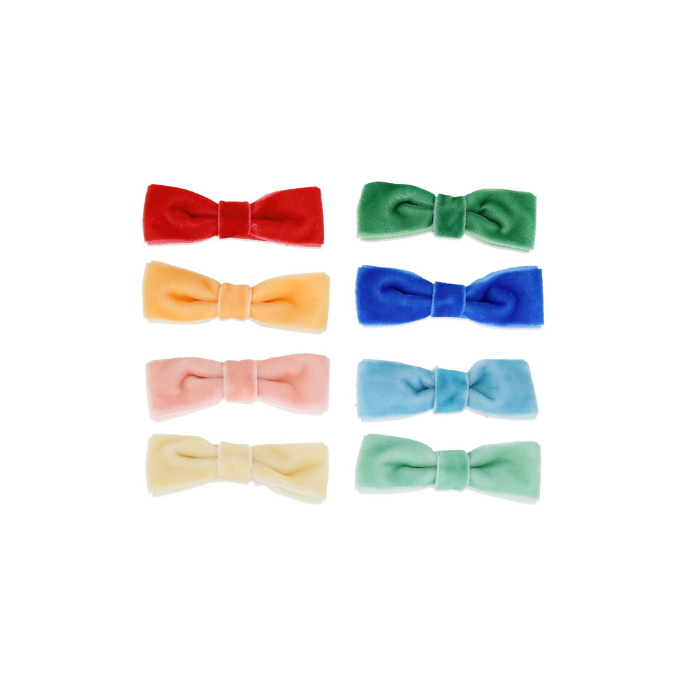 Bows are still having a moment, so complete your look with these stylish hair clips. They're made from sumptuous soft velvet in a rainbow of eight colors. Use them individually to complement or co-ordinate with your party or everyday outfit, or wear several for a truly vibrant effect. They make a great gift for kids, and adults, who love striking hair accessories, and they're also perfect to pop into party bags.