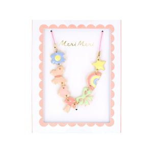 Instantly add a touch of color and fun to your look with this special necklace. It features enamel charms, in iconic shapes, guaranteed to add style and make you smile. Ideal for everyday wear or parties. The charms are looped onto a light pink cord, with a gold tone lobster clasp to easily secure it. Presented in a matchbox-style box, which is ideal for storage when it's not being worn. A wonderful gift for kids aged 8+, and adults, who love charming accessories.