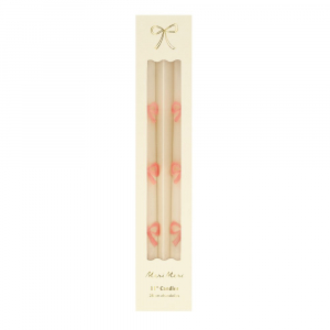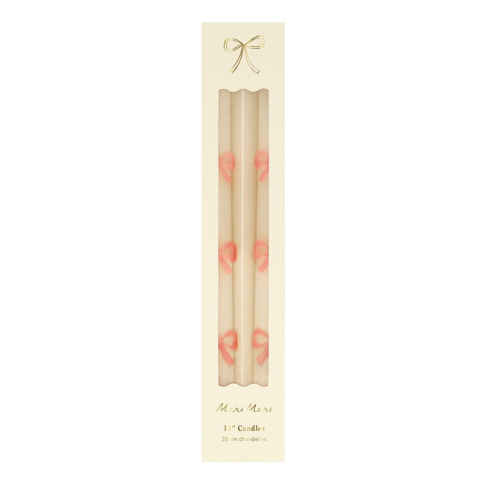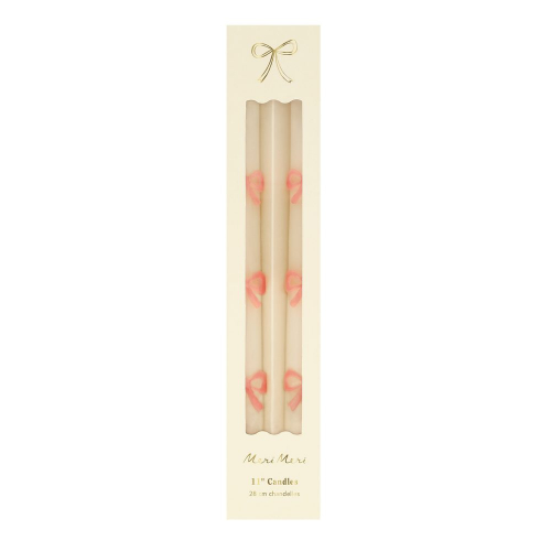 These tapered bow candles, have a special surprise detail - pink wicks! A wonderful hostess gift, or use to decorate the table or mantel at a party where pink will look just perfect, like a baby shower, bridal shower, princess or fairy party.