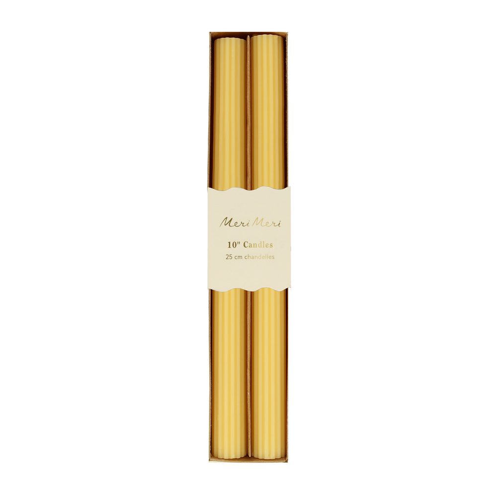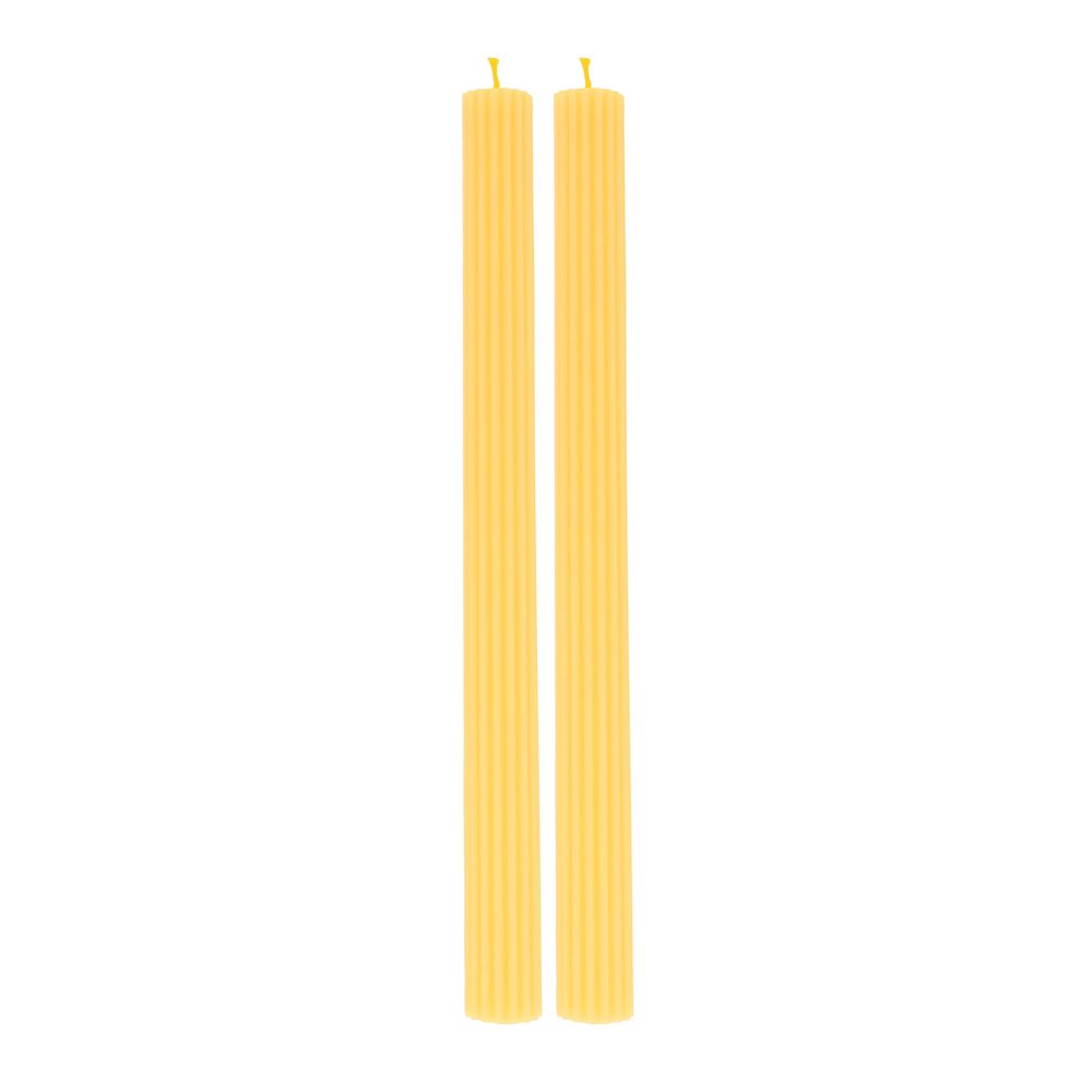 These striking yellow candles have matching wicks with ridged details for an oh-so-stylish look. Use them to decorate your party table or mantel or give as a fabulous hostess gift.