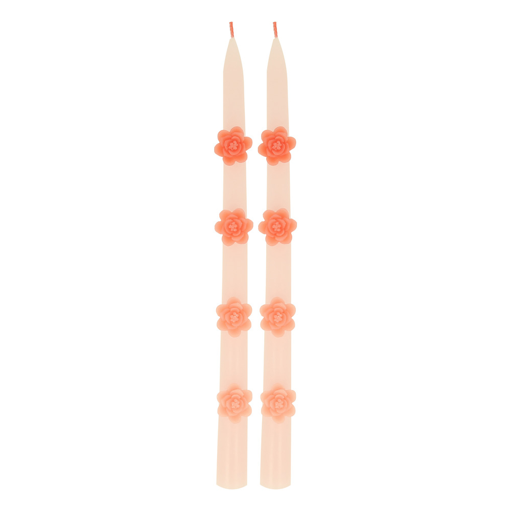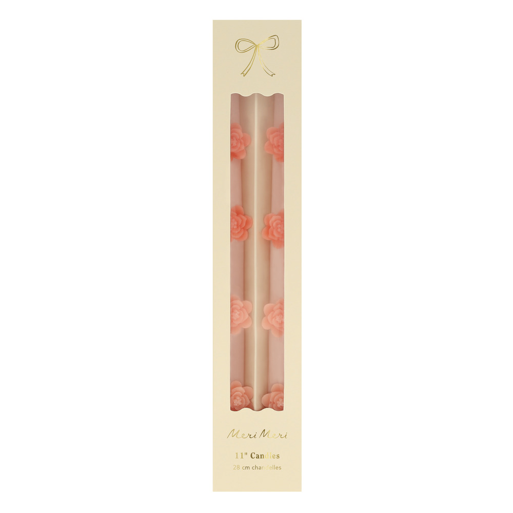 Who knew candles could be such a work of art? These elegant tall candles will make a statement on your party table or mantel. Look at the attention to detail – pink ombre colored wax flowers and pink wicks. They make a special host gift too.
