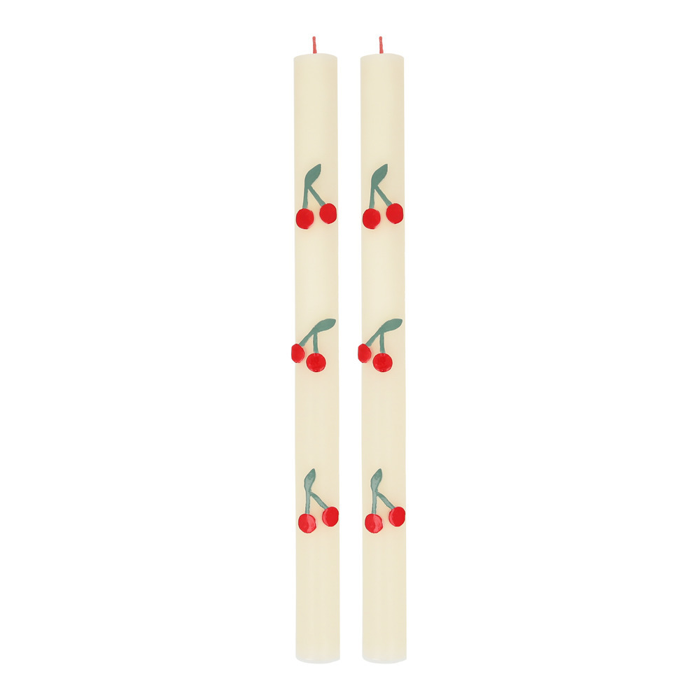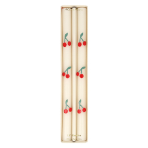 Summery and fun...cherries are the must-have design to give a fresh look to your parties. These ivory candles feature vibrant wax cherries with a hand-painted finish. And, for a really special touch, we've added red wicks too! These table candles are ideal for dinner parties or to add ambience to a garden party. They make a delightful host gift or present for anyone who loves decorative candles.