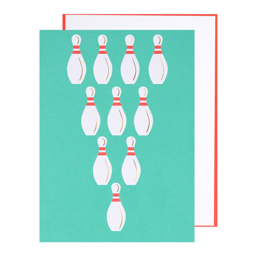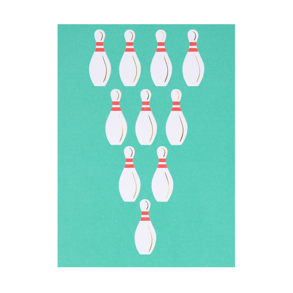 Strike! This is the perfect birthday card for someone who loves hitting the lanes. The receiver can simply lift up the paper bowling pins, and strike back board, for a fun 3D effect. Ideal to give to someone who is having a bowling party, or loves this sport.