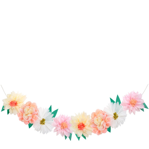 This fabulous flower garland will add beauty to any celebratory setting, or as a gorgeous decoration in your home. Crafted from tissue paper, with gold foil detail, and strung on a natural cord. The garland comes packed flat and is easy to assemble.