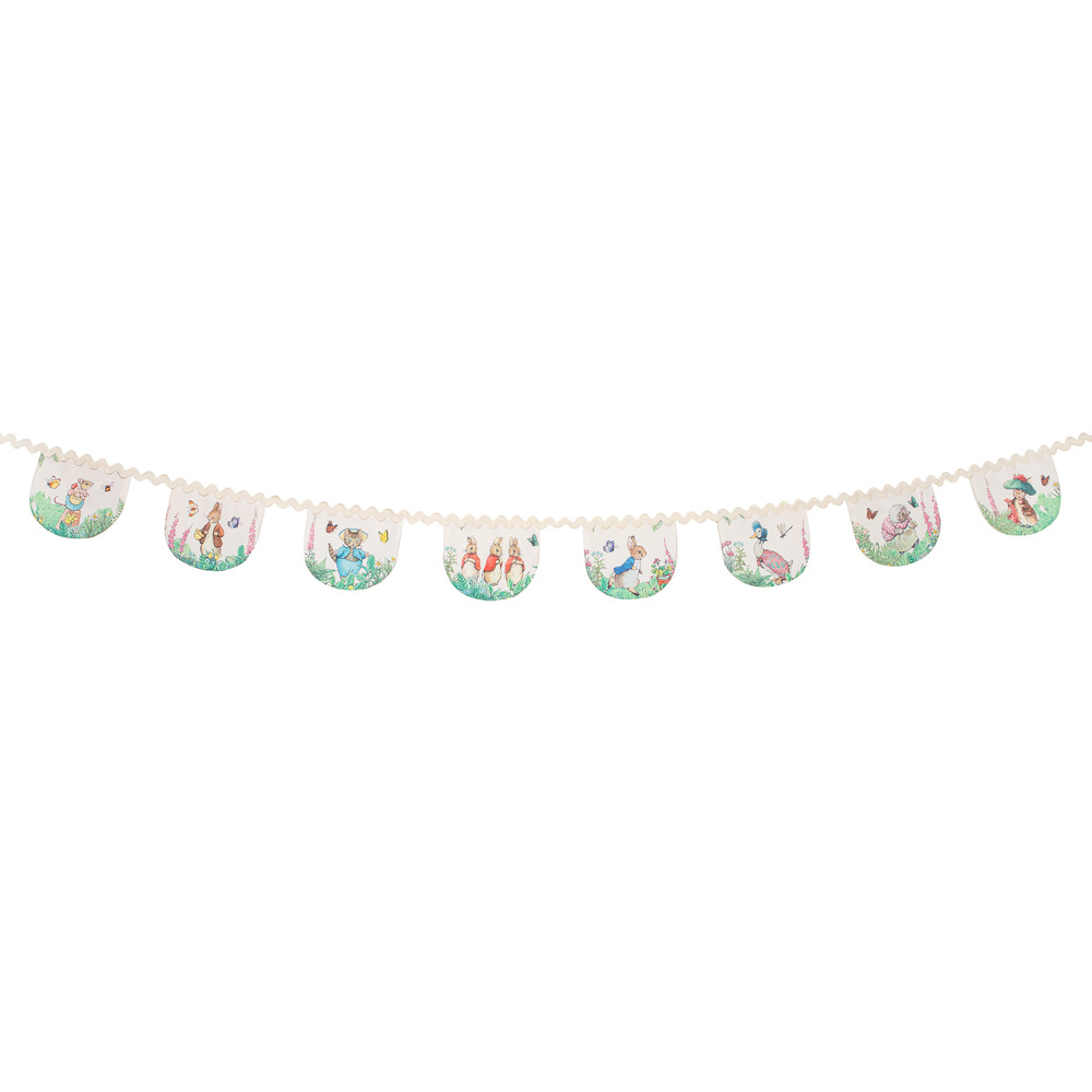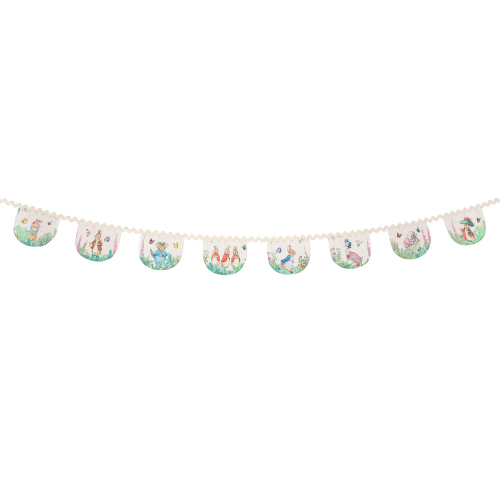 Peter Rabbit and his friends are here to make your party look extra special. This classic design looks delightful on this fabric and ric rac garland. Use it year after year - a great heirloom party decoration to keep and to treasure. It comes packaged in an organdie bag, ideal for storage, and makes a beautiful gift. Hang the garland in the porch, doorway, on a wall or mantel, or drape it on the party table for a lovely touch. It's ideal for a baby shower or birthday party. It'll also look amazing in a bedroom as a sensational decoration.