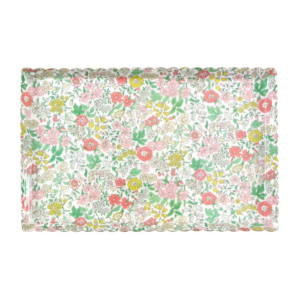 Teamed up with Liberty to create this striking large rectangular metal tray, finished in glossy clear enamel and featuring a delightful Liberty floral print design. With its elegant scalloped edge and stylish details, it’s a standout piece for placing on dressing or bedside tables or in hallways. Perfect for holding jewelry or beauty items, it’s as practical as it is pretty.
