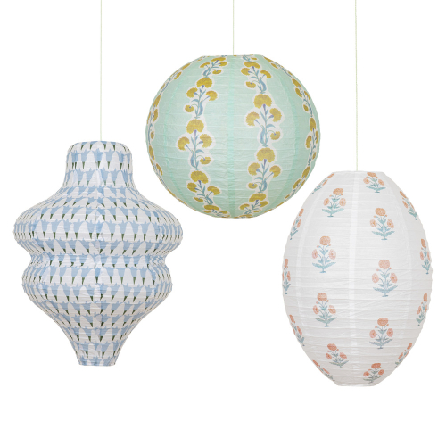 In collaboration with esteemed British printmaker Molly Mahon, using her patterns to create a beautiful bohemian party collection.This stylish set of hanging decorations can be used time and time again, or in the home for year long decoration. Hang them over your party table, inside or outside.