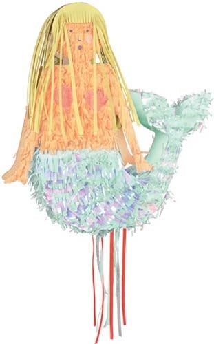 Plucked from a magical undersea kingdom this mermaid pinata is perfect for a special celebration. The mermaid is decorated with iridescent and colored tissue paper fringing, featuring a beautiful shimmering tail and long blonde hair. All you need to do to add a little extra excitement to your bash is to assemble your piñata, fill it with treats and get whacking.