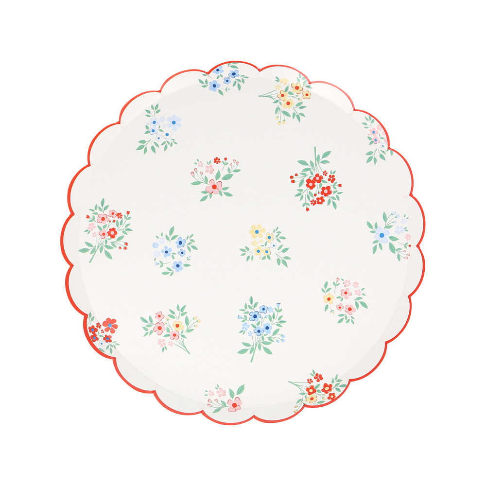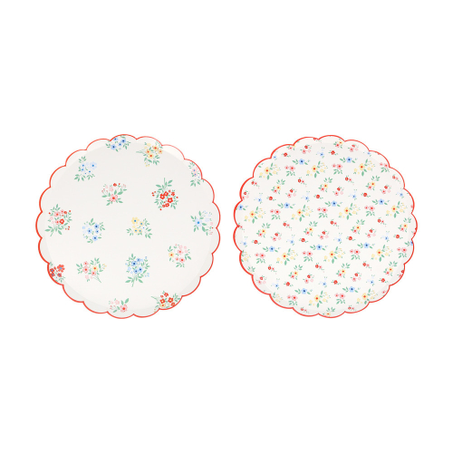 Dainty posy bouquets and ditsy floral clusters add effortless elegance to any setting. These classic designs are influenced by fashion-forward floral pattern trends, which include a touch of red to keep the look modern and fresh. Use these paper side plates, with a stylish scalloped edge, for baby showers, bridal showers, afternoon tea, garden parties or wherever you want a sophisticated effect.