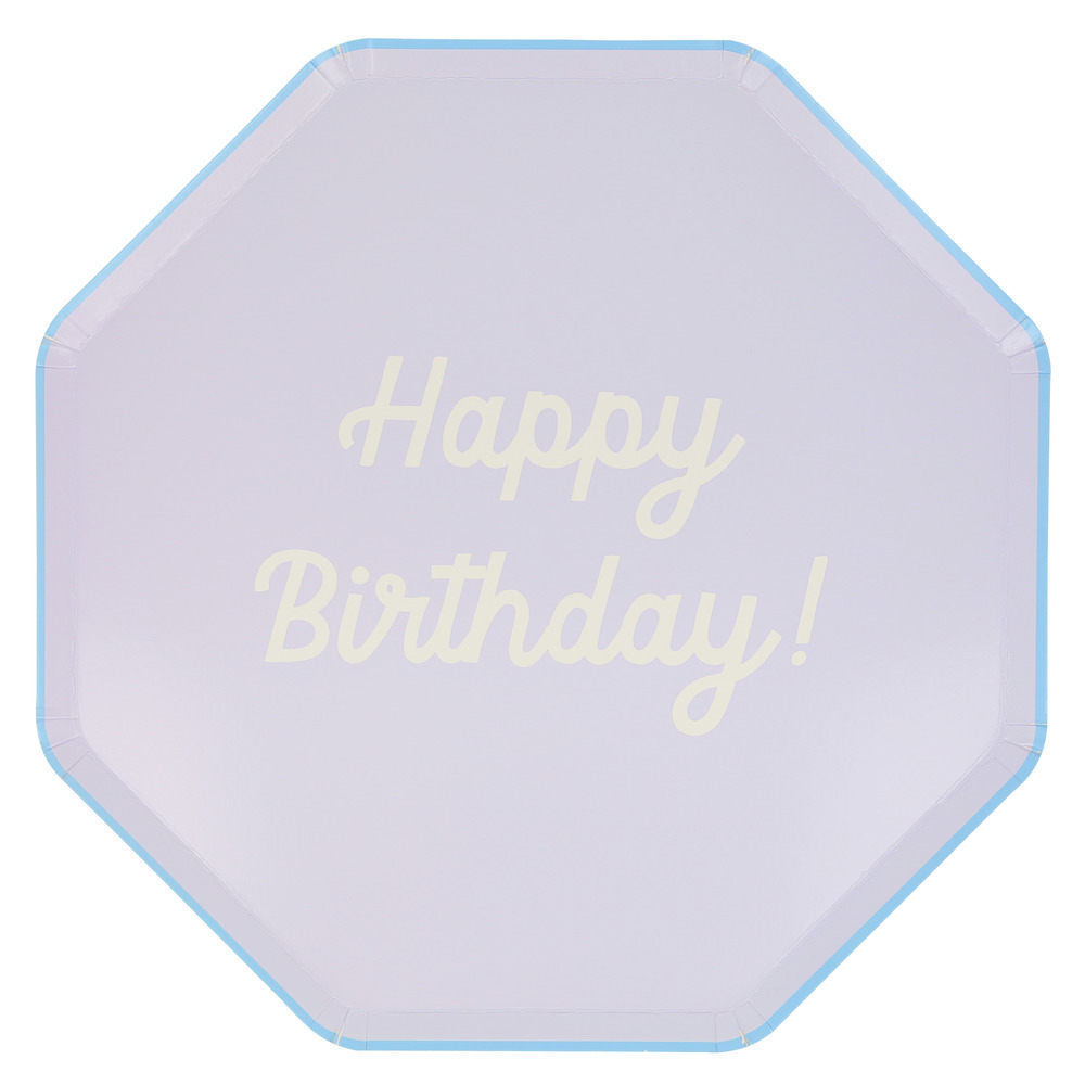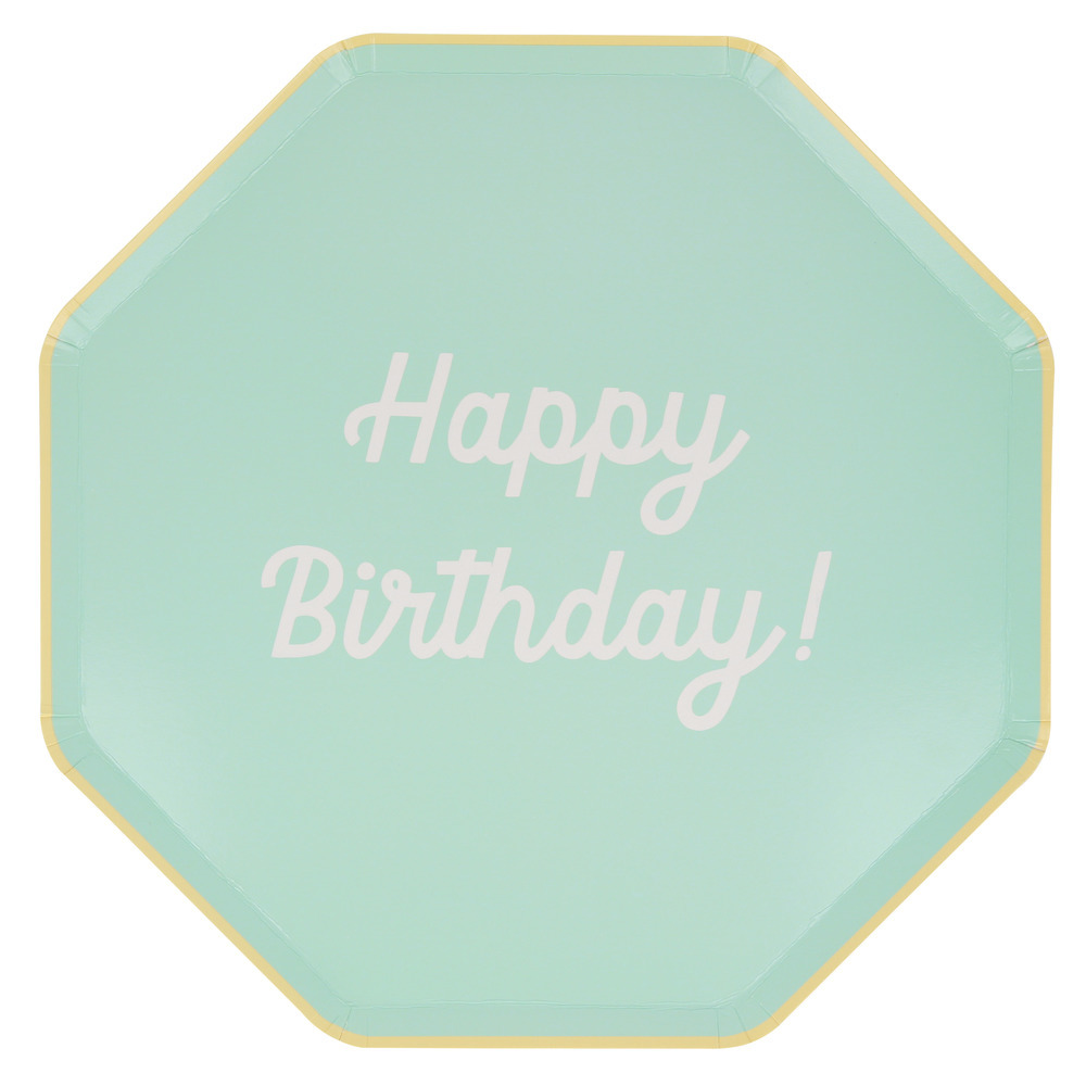 You can never say “Happy Birthday” too many times, so let these special paper dinner plates spell it out for you! This set contains a rainbow of colors to brighten up any birthday party, and beautifully complement the rest of your birthday party supplies. Each octagonal plate also has a co-ordinating colored border to add extra style to the celebrations.
