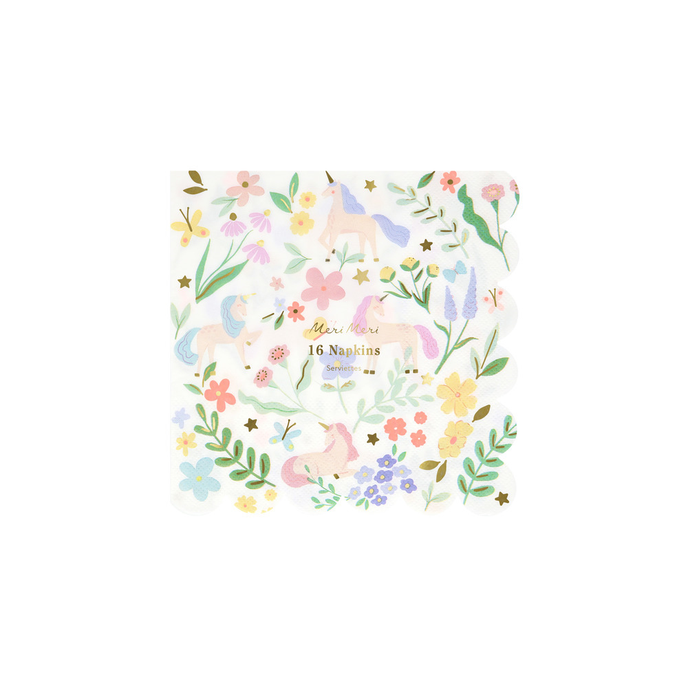 The combination of unicorns and meadow flowers is a match made in party paradise. These small paper napkins, with a stylish scalloped border, will instantly make your unicorn or princess party look so magical. Great for mixing and matching with pastel tableware and decorations.