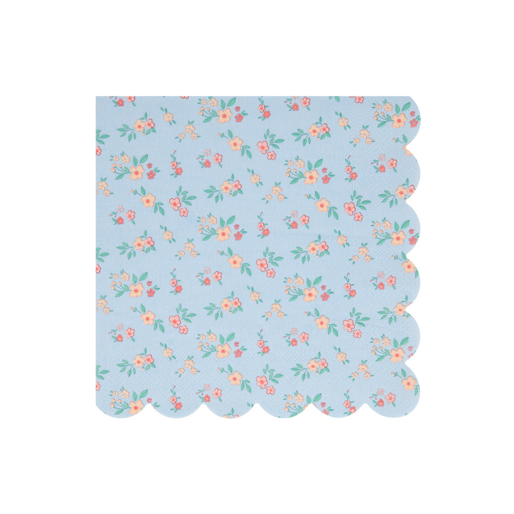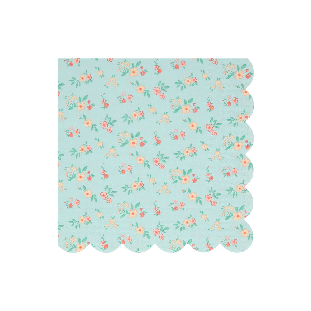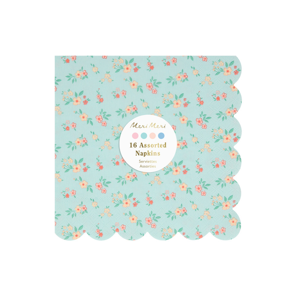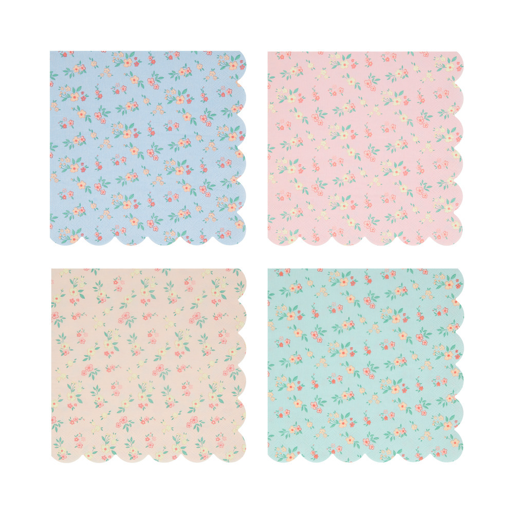 Ditsy floral clusters add effortless elegance to any setting. This classic design is influenced by fashion-forward floral pattern trends, with a scallorded border for a stylish look. The four different vintage color ways, of pink, peach, mint and blue, in this large napkin set are perfect for afternoon tea, garden parties, bridal showers or baby showers.