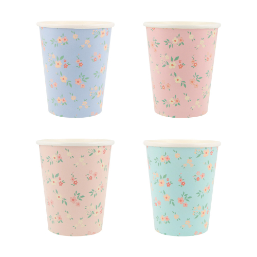 Ditsy floral clusters add effortless elegance to any setting. These classic designs are influenced by fashion-forward floral pattern trends, with four vintage color ways. Use these stylish paper cups to deliver drinks, hot or cold, at any stylish celebration like a baby shower, bridal shower, afternoon tea or garden party.