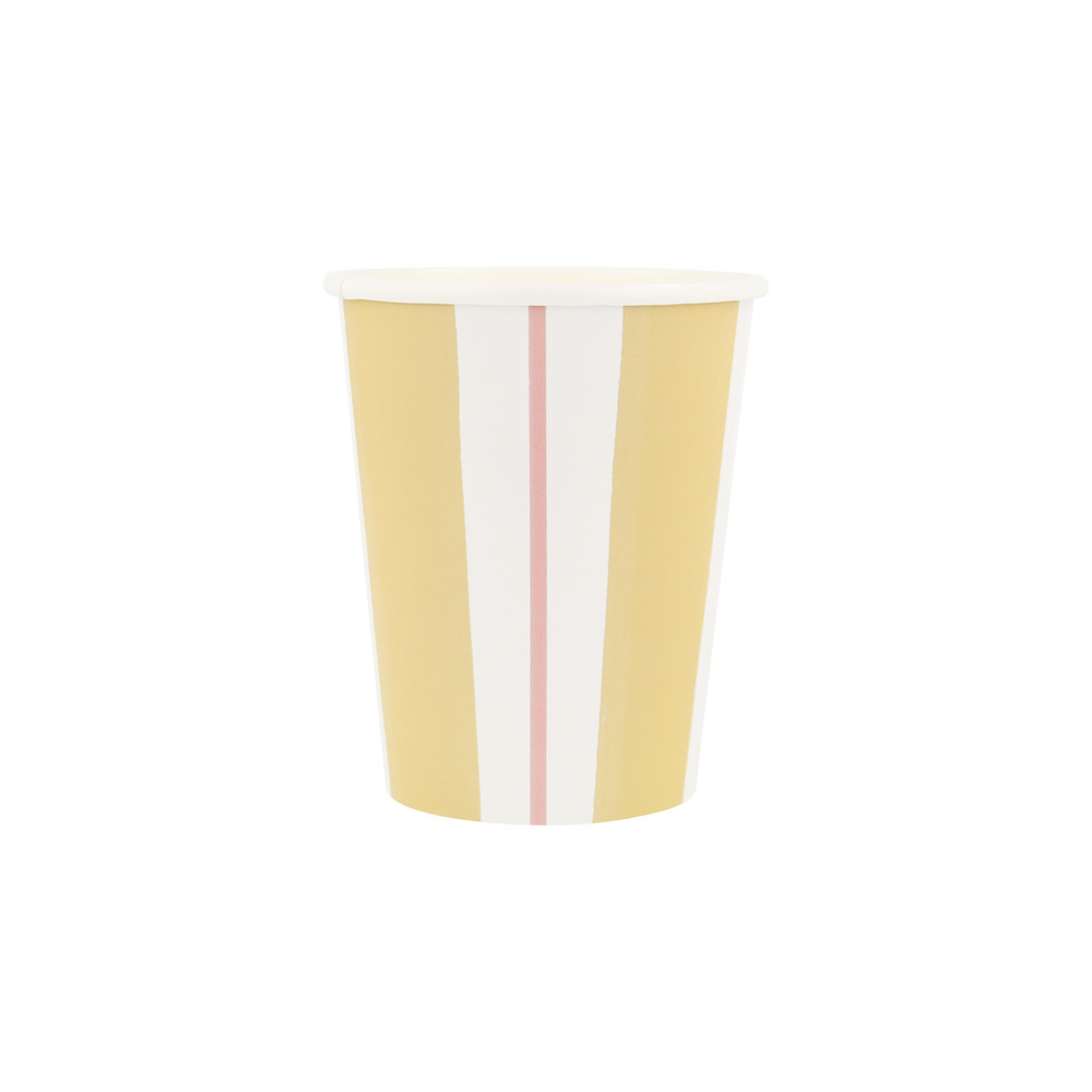 These classic stripes, in fun primary colors, will instantly give a summery vibe to your celebrations. Inspired by awnings, deckchairs and sun loungers, these premium paper cups are perfect for garden parties, picnics, and beach and pool parties.