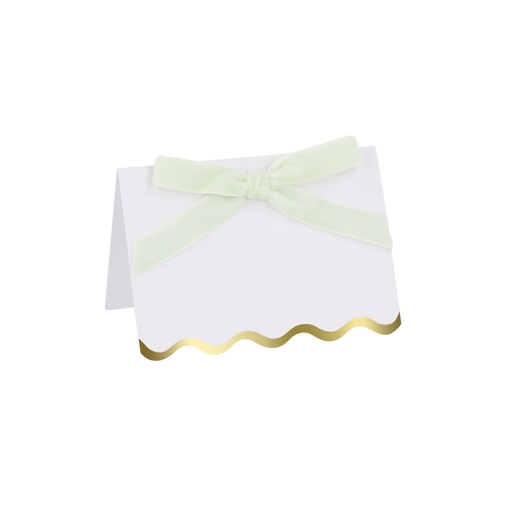 Using place cards at a party is a thoughtful and stylish way to organise your seating, whilst adding a decorative touch to your table. This special set features soft velvet bows, and scalloped shiny gold foil borders, for a luxurious effect. The pastel tones will beautifully complement any celebratory meal, like for a baby shower or bridal shower.