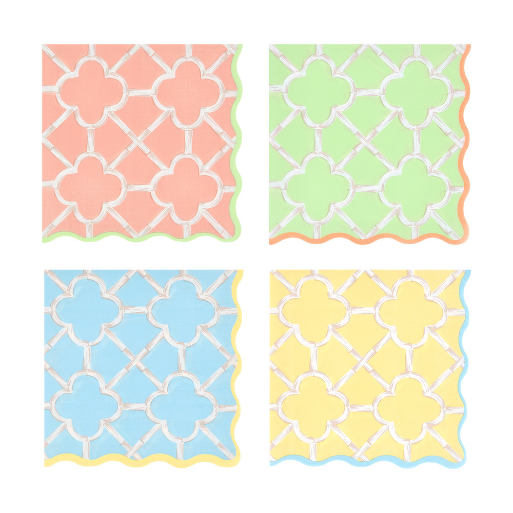 Bring the bamboo interiors trend to your party table – Meri Meri style! This paper tableware is fresh, fun and full of charm for all ages, whether it’s a birthday, picnic or summer celebration. With four cheerful colors and a bright, contemporary design, these large paper napkins will add instant sunshine to any setting.