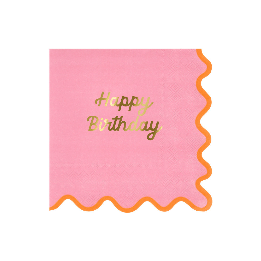 Bring a playful twist to your party with these delightful napkins. With a bright, cheerful palette, an on-trend ricrac wiggle edge and ‘Happy Birthday’ in shiny gold foil, these paper napkins will bring instant vibrancy and style to any birthday table. Mix and match with the rest of your tableware for a rainbow of fun that’s sure to delight every guest.