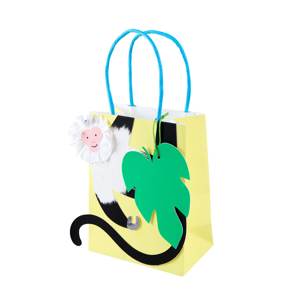 Welcome to the jungle, it’s party time! These paper party bags feature a lively mix of jungle friends, illustrated with playful detail and charming embellishments. Each bag comes with a paper leaf-shaped tag, perfect for writing the lucky recipient’s name on. Bright and colorful, they’re ideal for filling with party treats, then little ones will love storing their favorite treasures in them long after the party ends.