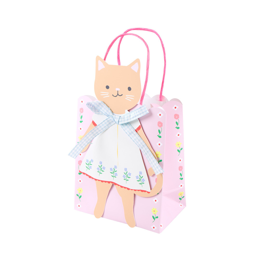 Embrace the graceful charm of the folk interior trend with these Kitten Club paper party bags. Each features an exquisitely illustrated kitten, dressed in a folk-inspired outfit and finished with a delicate ribbon bow. Perfect for filling with thoughtful party bag gifts, then cherished by guests as keepsake bags long after the celebration ends.