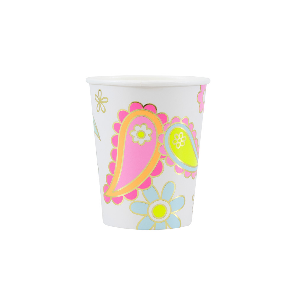 Bring a burst of retro charm to your drinks table with these Flower Power paper cups. Featuring four groovy 60s and 70s–inspired designs in bright colors and sweet neons with shiny gold foil details to add instant summer vibrancy and a happy, uplifting vibe to any celebration. Perfect for sophisticated sipping of hot or cold drinks, these stylish cups have a 9oz capacity.