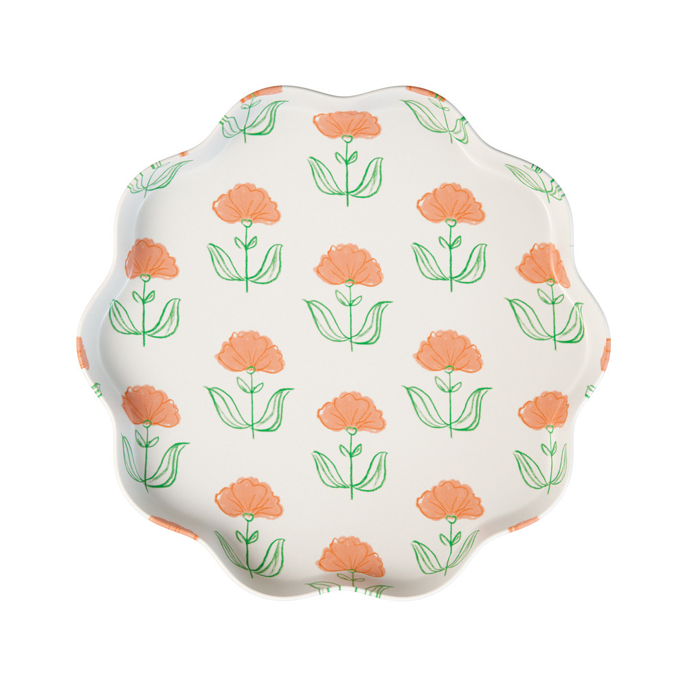 Bursting with color and charm, these reusable small plates take inspiration from traditional Indian block prints, decorated with beautiful floral patterns. Perfect for grown-up gatherings and for kids who adore style, they’re ideal to serve side dishes, snacks and desserts at any chic celebration.