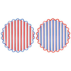 Set sail for stylish celebrations with these striking paper dinner plates. Featuring bold red, white and blue stripes and a delightful waved edge for a breezy effect, they'll bring seaside charm to any table. Perfect for chic summer gatherings or playful children’s parties with a nautical theme, this design captures the spirit of sunny days, salty air and effortlessly elegant entertaining.