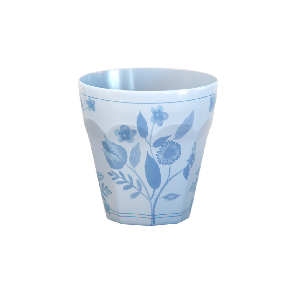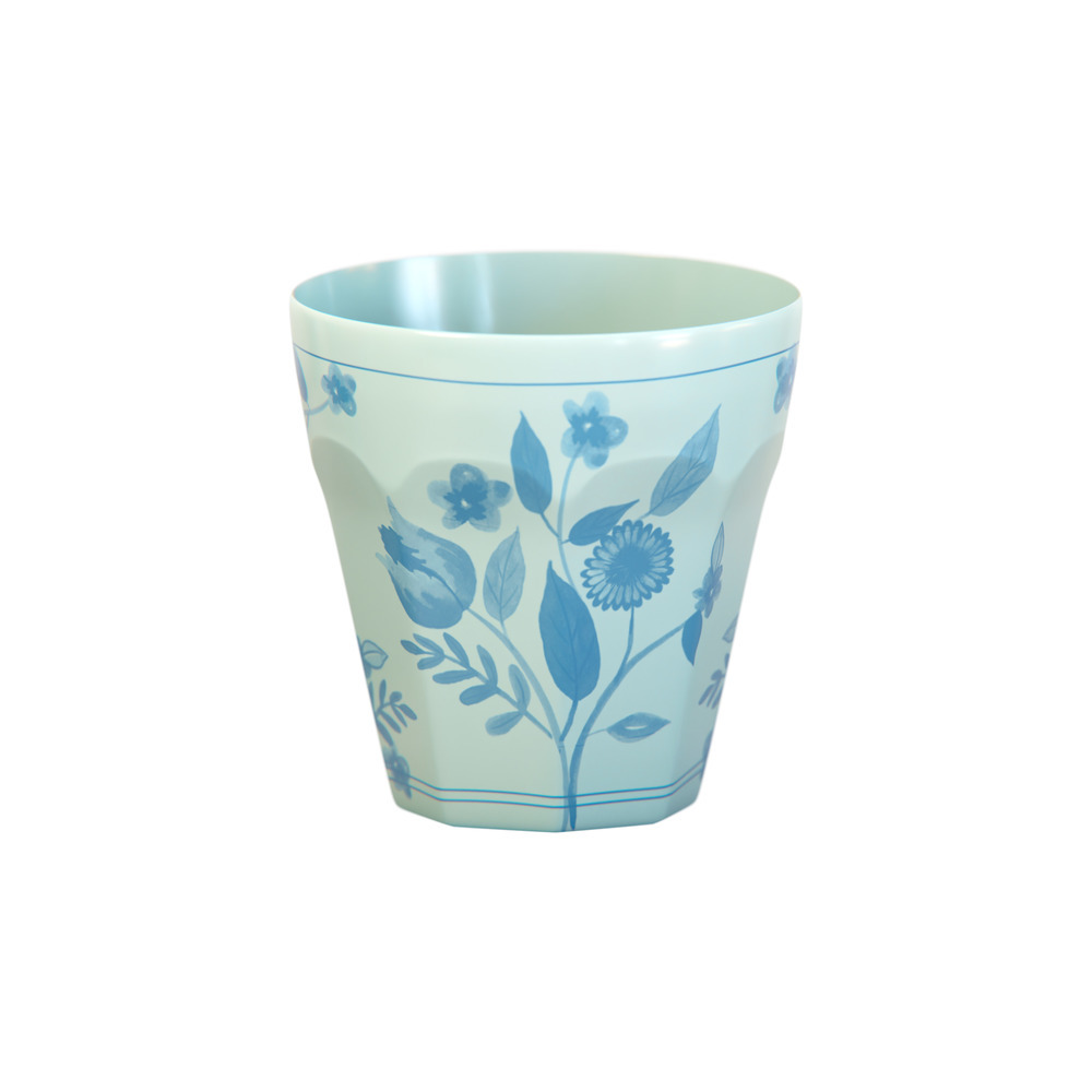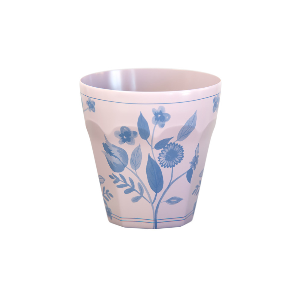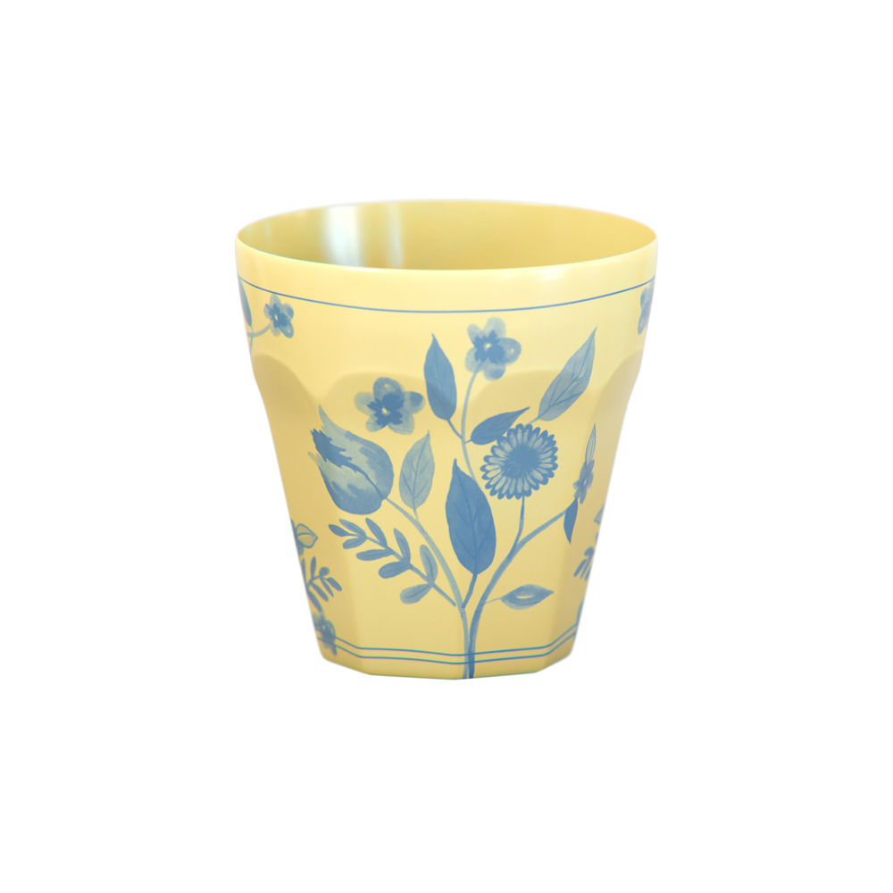Create a sophisticated table setting with this set of pastel reusable cups. Soft shades of pink, blue, green and yellow, provide a fresh backdrop for delicate cobalt blue botanical illustrations. Inspired by vintage dinnerware, the design brings timeless style, while a waved edge adds refined detail.