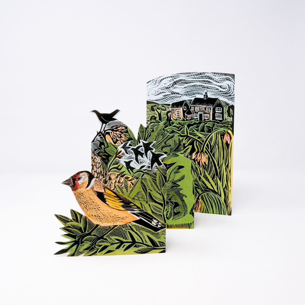 Angela Harding's three dimensional cards are collectable works of art in every sense. Combining her distinct linocut art with either 'Concertina' or 'Diorama'-style die-cuts, both are sold flat with - and can be posted in- an A5 envelope.