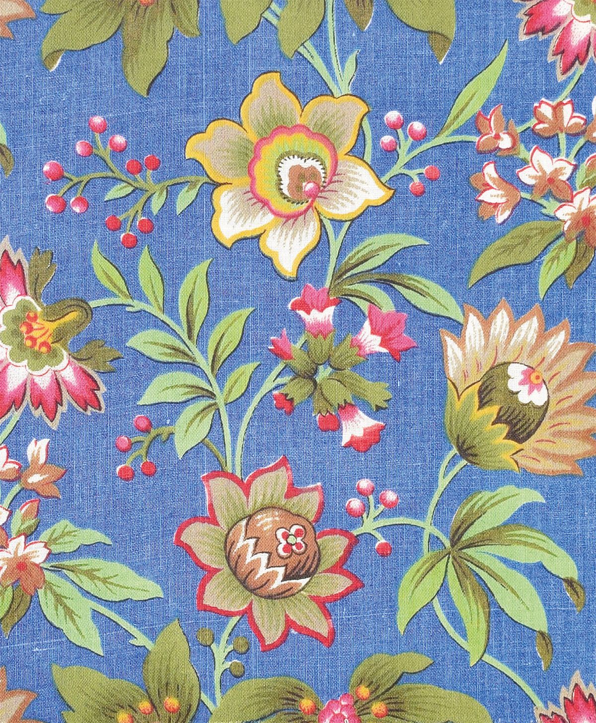 Floral On Blue Cotton