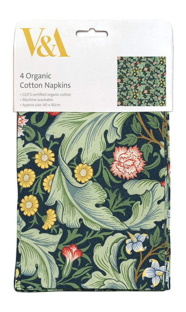 The collection of beautifully printed organic Cotton Napkins features beautiful designs to match Tea Towel sets, Aprons and Oven Gloves.