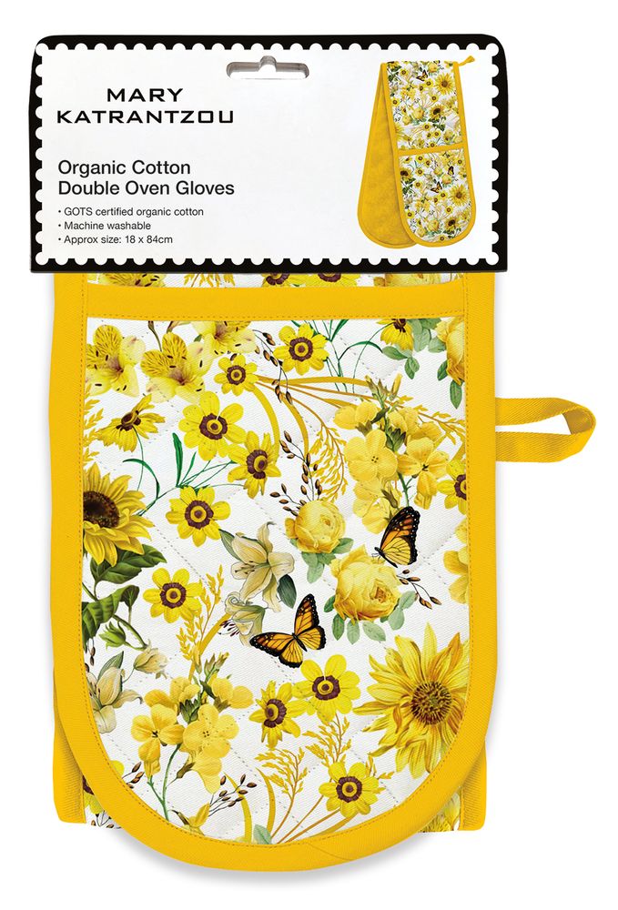 Forming an exciting quartet of related new Homeware products alongside Aprons, Tea Towel Sets and Napkins, these Organic Cotton Oven Gloves feature stunning prints, accent piping and terry-towel inner fabric. With a handy hanging loop, they are both beautiful and useful in the kitchen.