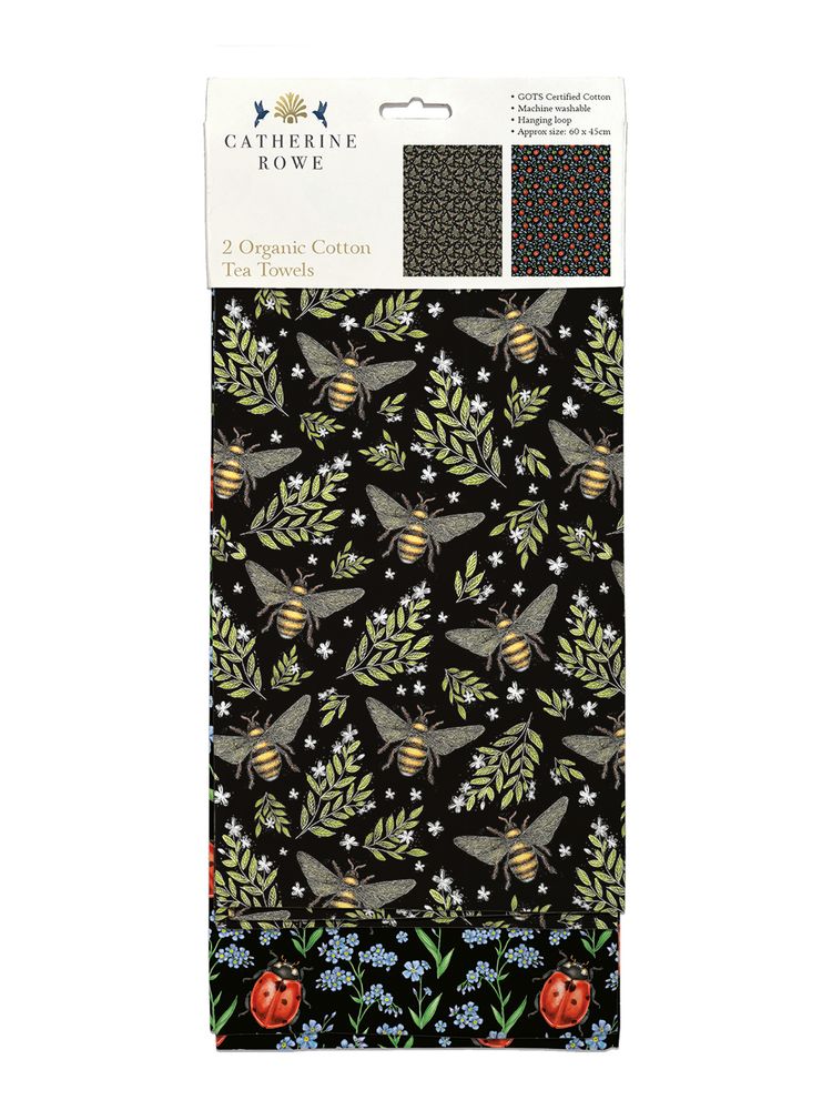 TEA TOWEL Honey Bee Pattern And Ladybirds