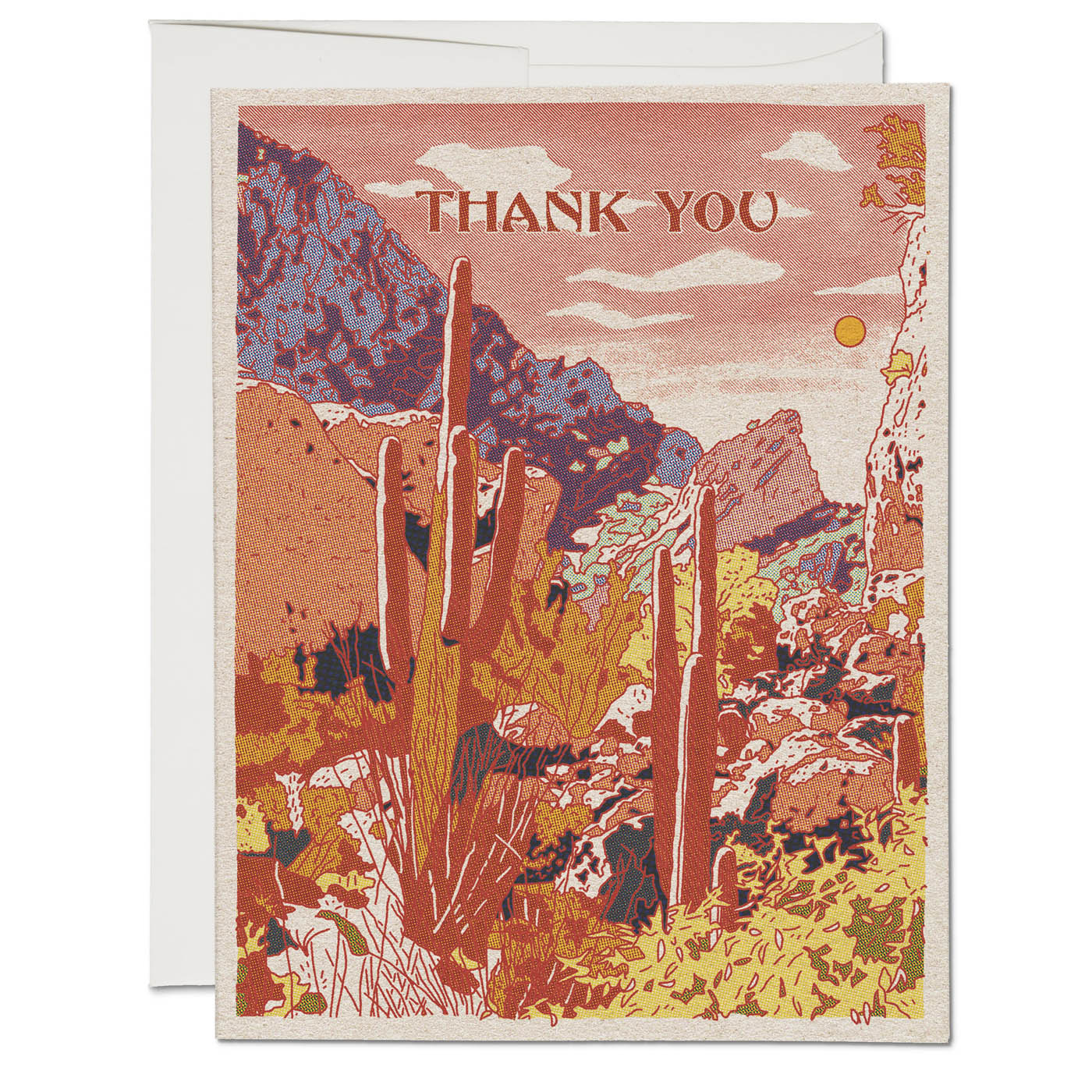 Greeting cards are printed in Los Angeles, California on premium recycled paper, and individually packaged in a recycled clear plastic sleeve with a matching envelope.