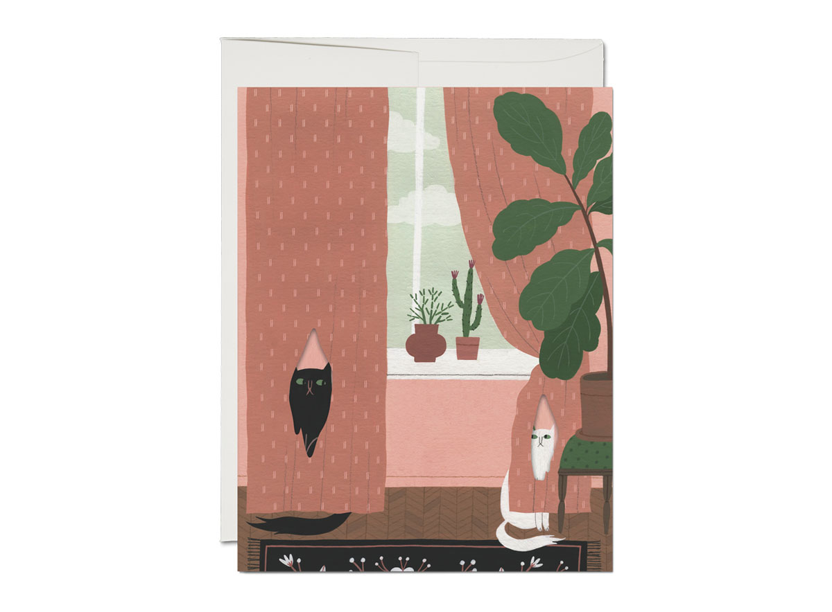 Greeting cards are printed in Los Angeles, California on premium recycled paper, and individually packaged in a recycled clear plastic sleeve with a matching envelope.