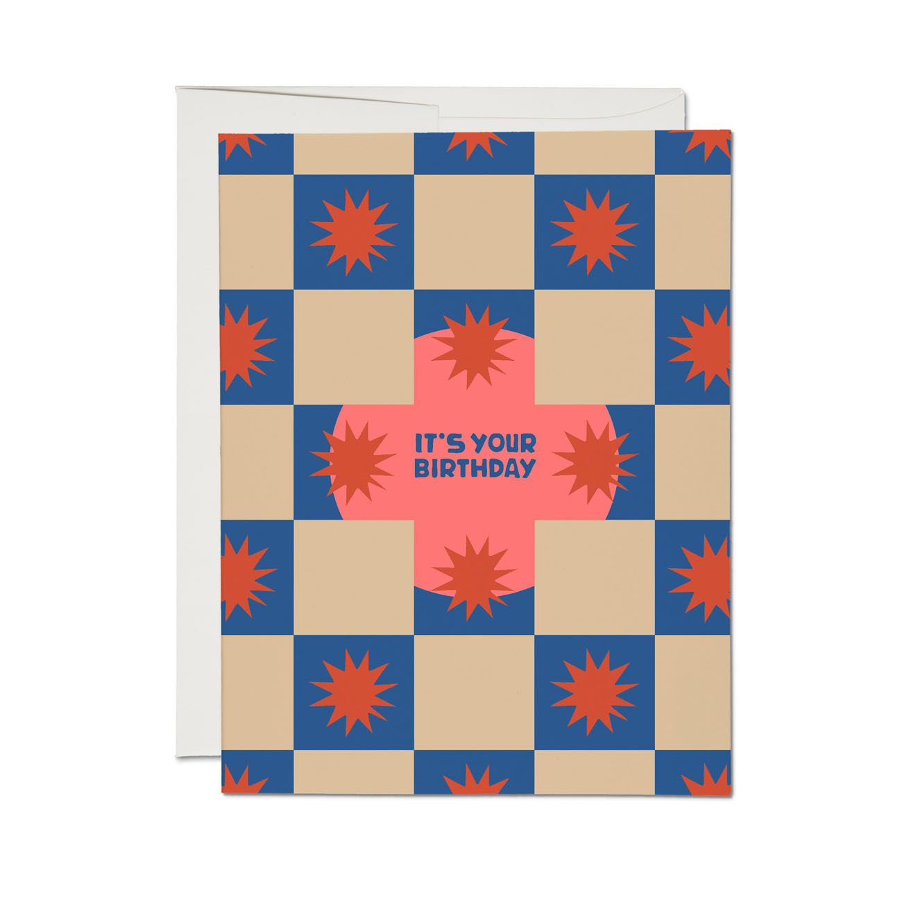 Squares And Bursts SPOT Birthday Card|Red Cap Cards