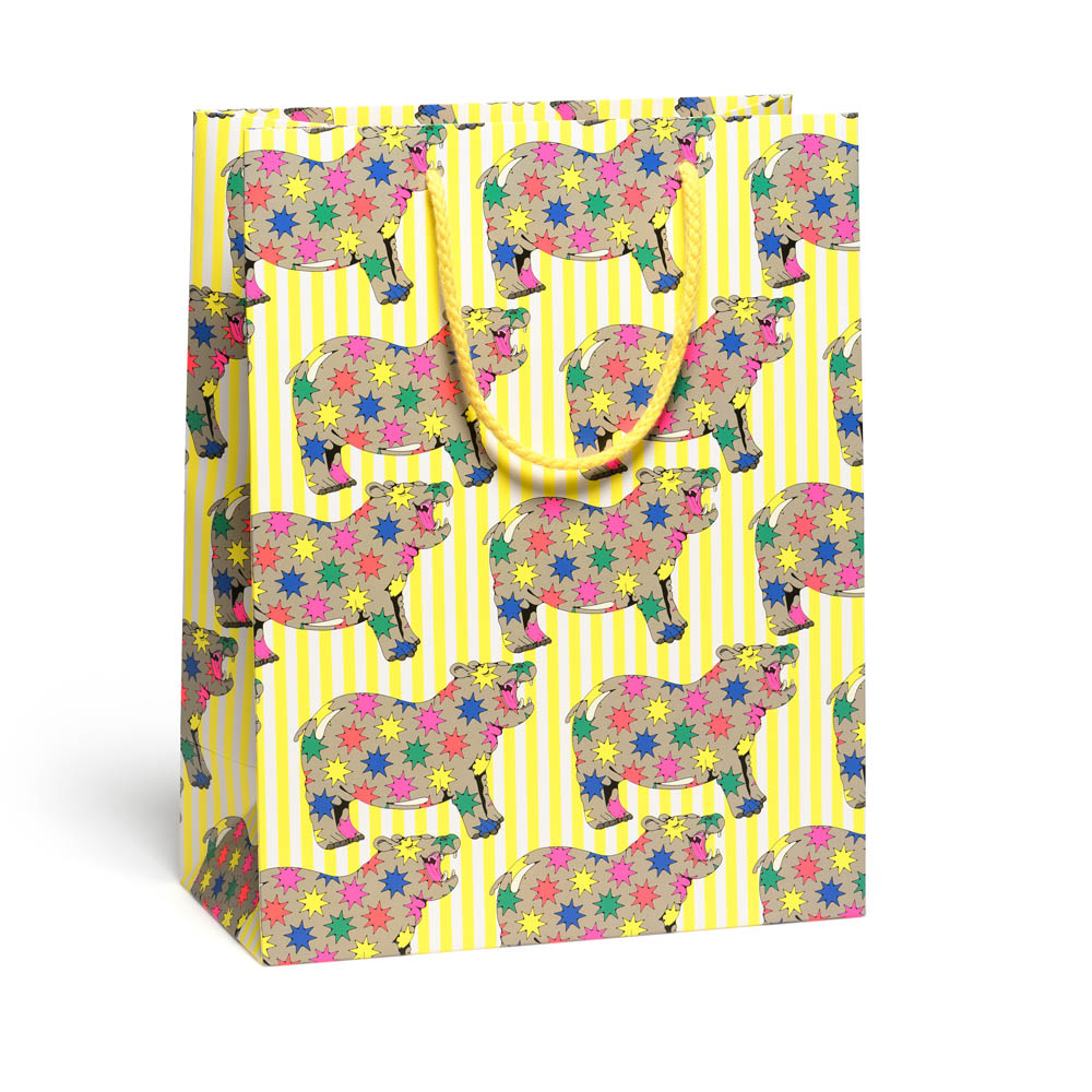 Gift bags are printed on heavyweight matte coated paper and finished with a 100% cotton rope handle.
