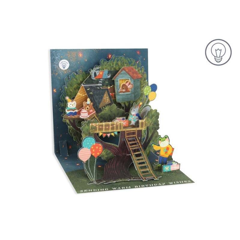 Treasures greeting cards combine colourful artwork with pop-ups in a square format. Each card features LED and/or fiber optic light effects.