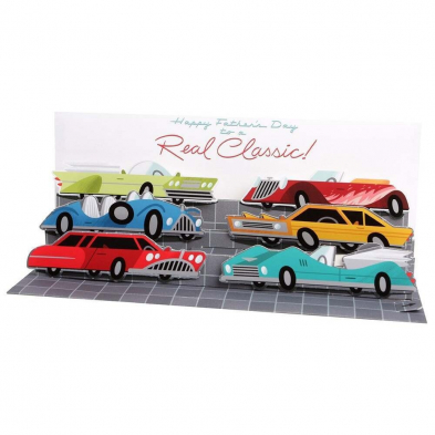 Panoramics are horizontal cards designed to showcase a festive pop-up scene. Cards may integrate pull-tab movement along with sound or light.