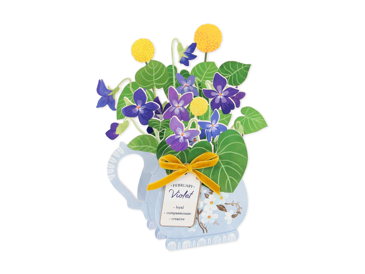 Pop-up flowers dedicated to each month are paired with a tag highlighting the recipient's greatest qualities. Each card is finished with gold foiled accents and a velvet bow.