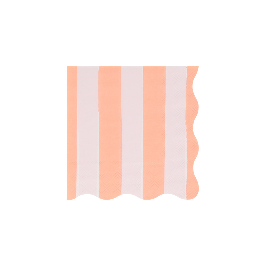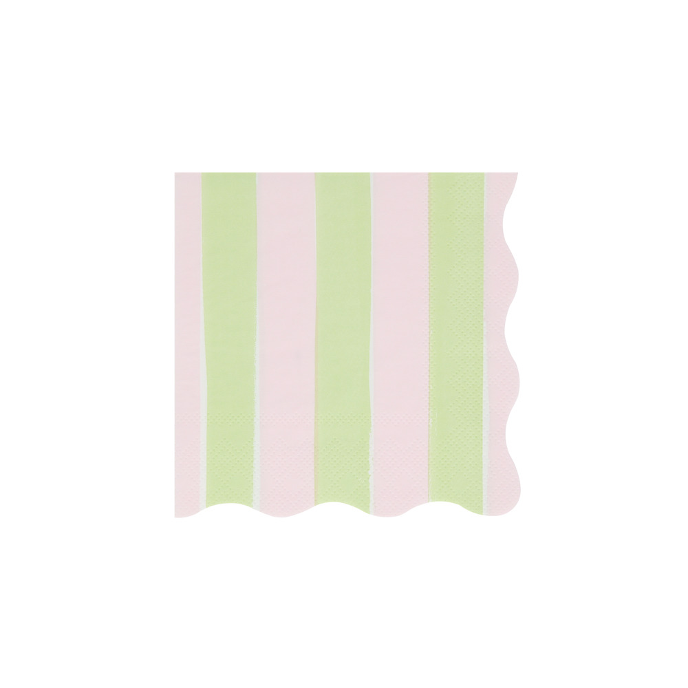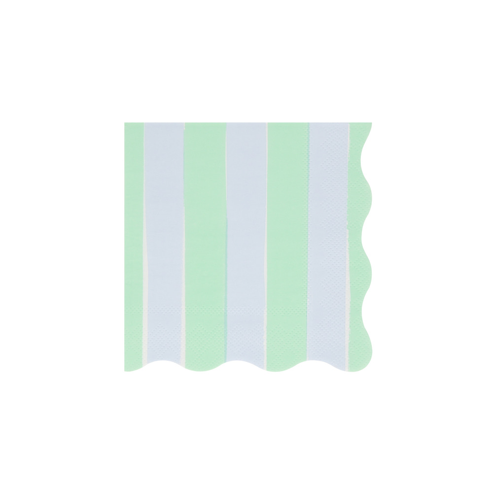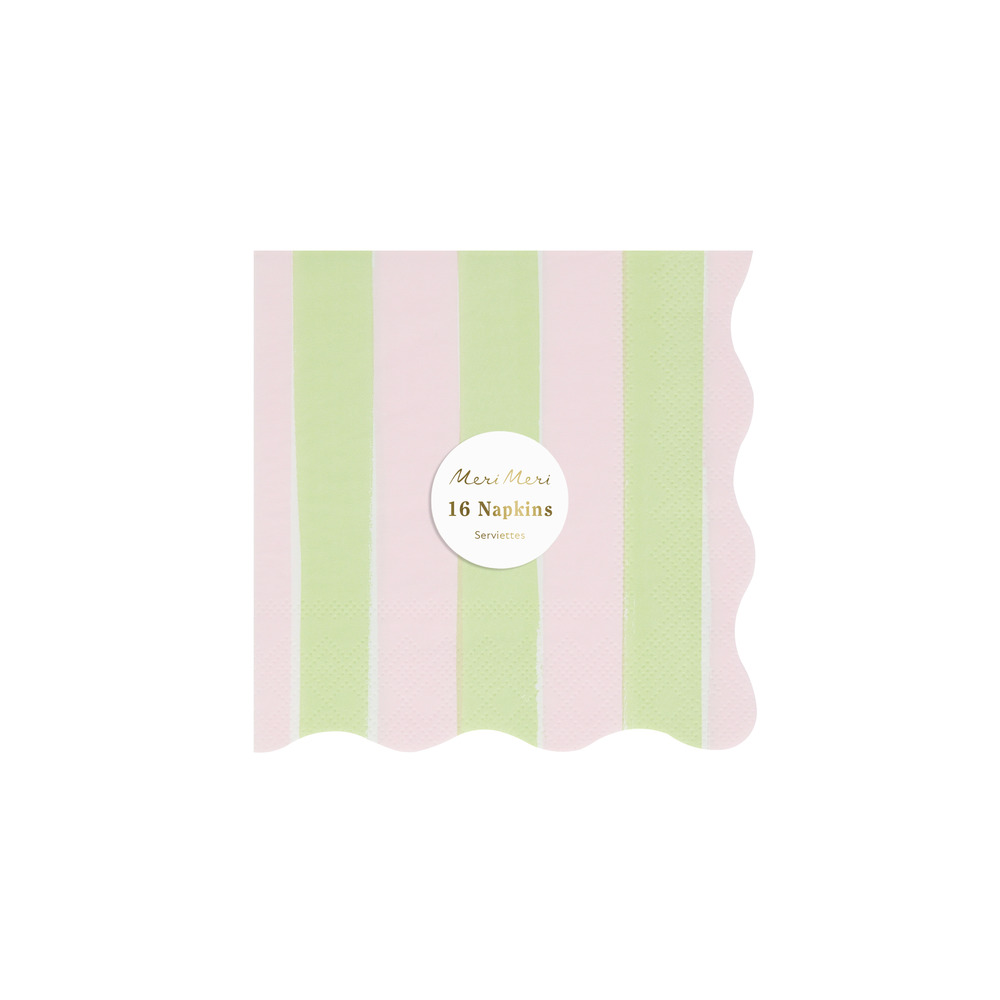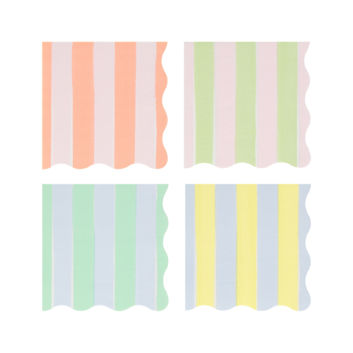Painted effect stripes in fresh pastels are a fun addition to any party. Use them at any special meal where you want a splash of soft color. These small napkins, with a wonderful wavy edge, are ideal for table layering. They'll work well for garden parties, cocktail parties, picnics, baby showers or anytime you want a pop of springtime color.