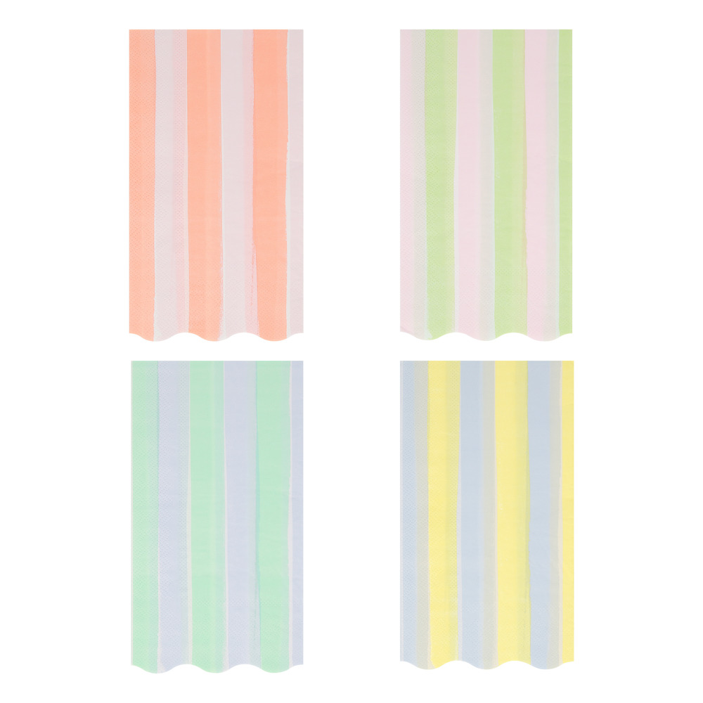 Painted effect stripes in fresh pastels are pure party perfection! Use them at any special meal where you want a splash of soft color in a timeless design, or you can place them in guest bathrooms too. These guest towels, with a wonderful wavy edge, are ideal for table layering. They'll look amazing at a garden party, picnic, baby shower or anytime you want the beauty of springtime to shine through.