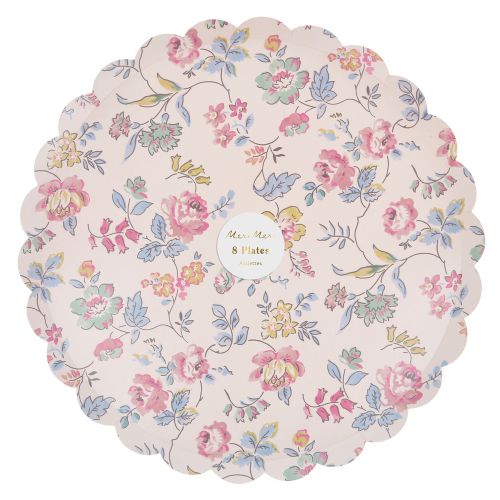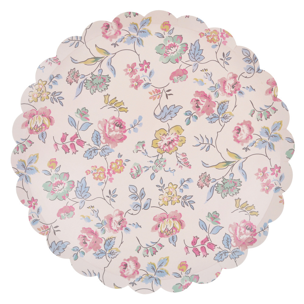 Add elegance and charm to any table with these stylish paper dinner plates. The pretty pastel pink chintz design is a fresh take on a timeless classic, with delicate florals in soft shades that bring sophistication to special occasions. A gently scalloped edge echoes vintage dinnerware, adding a refined and graceful finish.