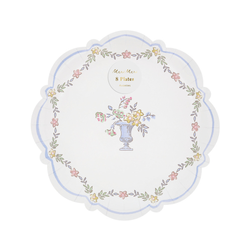 Add elegance and charm to any table with these stylish paper side plates. Inspired by rococo dinnerware, they feature a chintz-style floral design with a decorative urn at the center. The softly waved edge offers a graceful finish, echoing the beauty of vintage ceramics with a fresh touch.