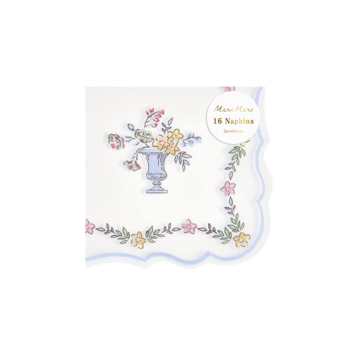 Add elegance and charm to any table with these stylish small paper napkins. Inspired by rococo dinnerware, they feature a chintz-style floral design with a decorative urn at the center. The softly waved edge offers a graceful finish, echoing the beauty of vintage ceramics with a fresh touch.