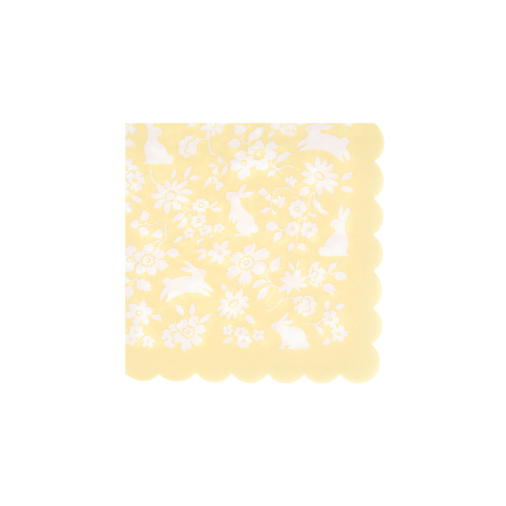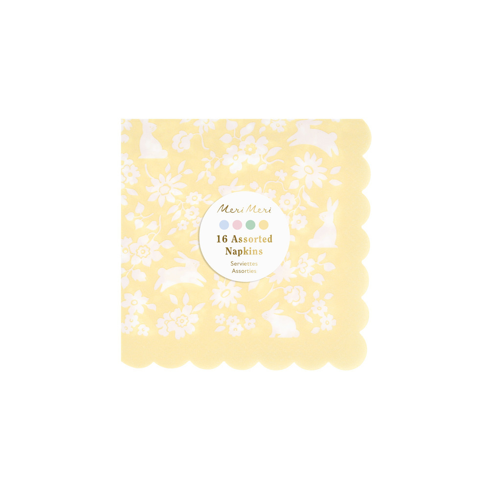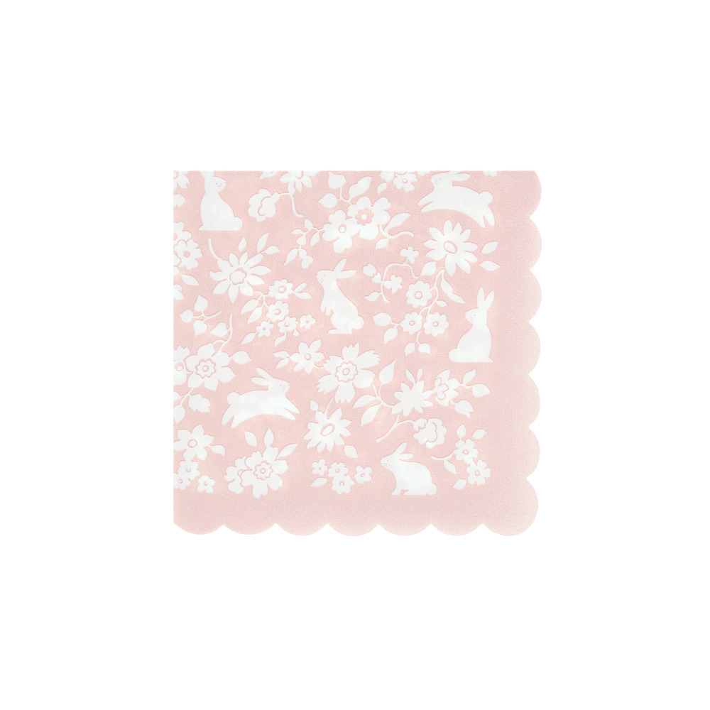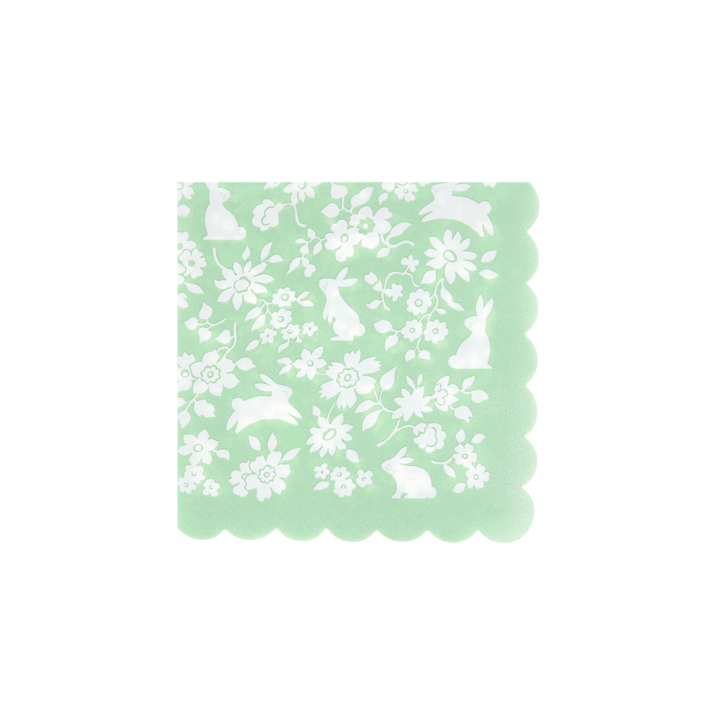 Set the table for springtime joy. These paper napkins are a fresh, charming way to elevate your seasonal table. Featuring a ditsy floral pattern, adorable bunny illustrations and a softly scalloped edge, they’re full of playful character with a polished finish.