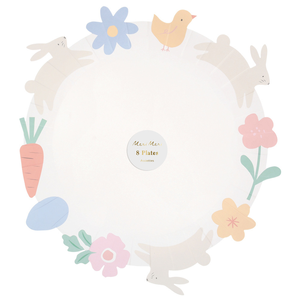 Elevate your Easter dinner table with these premium paper plates. Each dinner plate is edged with charming illustrations of bunnies, carrots, flowers, a chick and an egg, bringing a playful, decorative touch to your celebration. These deep sided plates are perfect for adding a little springtime joy and style to your table layering.
