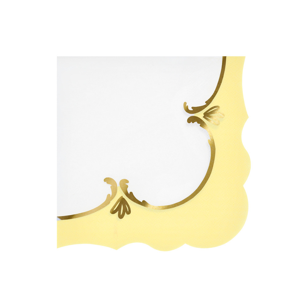 Inspired by the ornate elegance of rococo design, these large napkins come in a harmonious mix of pastel blue, pink, yellow and green. Made from soft paper, with a stylish wavy edge and shiny gold foil illustrated details, they add a refined flourish to any table setting.